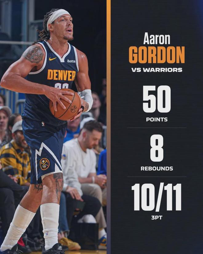 掘金那边,最耀眼的莫过于吕布,不,戈登,三分球11中10&仅站上罚球线6次狂轰50分外加8板2助,无奈进入了空砍群,使里程碑变成了里程悲,没有胜利加持的豪华数据并不是很值得高兴。